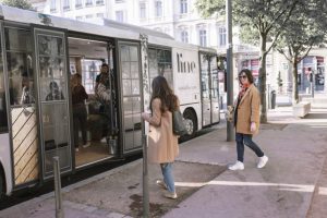 Un espace évènementiel atypique et mobile – À bord du bus line – LINE est un autobus de 12 mètres de long, entièrement transformé en un joli appartement-boutique. Spacieux, lumineux, il est conçu pour s’adapter à toutes vos envies : LINE est un espace unique pour (faire) vivre des expériences